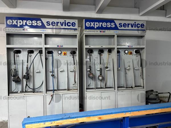 VENDITA DA AZIENDA ATTIVAImpianto di distribuzione tre tipologie di olio lubrificante con pompe elettriche di prelievo, acqua, aria, aspirazione olio esausto, composta da due armadi e da quattro kit di erogatori a parete composti da quattro arrotolatori ognuno.Con la possibilità di aumentare le utenze aggiungendo un quinto erogatore per ogni postazione disponibile e nuove di fabbrica.
