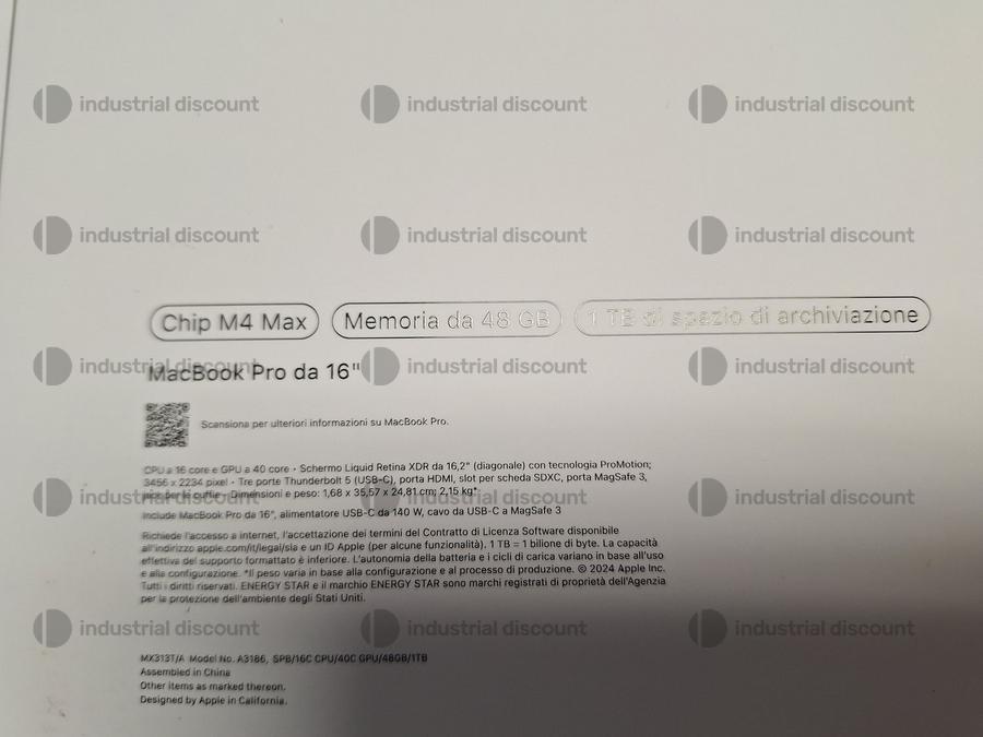 - n.1 Macbook pro 16,2'' mod. A3186 M4 MAX 40 core 1 TB ssd 48GB ram con scatola e alimentatore ID44