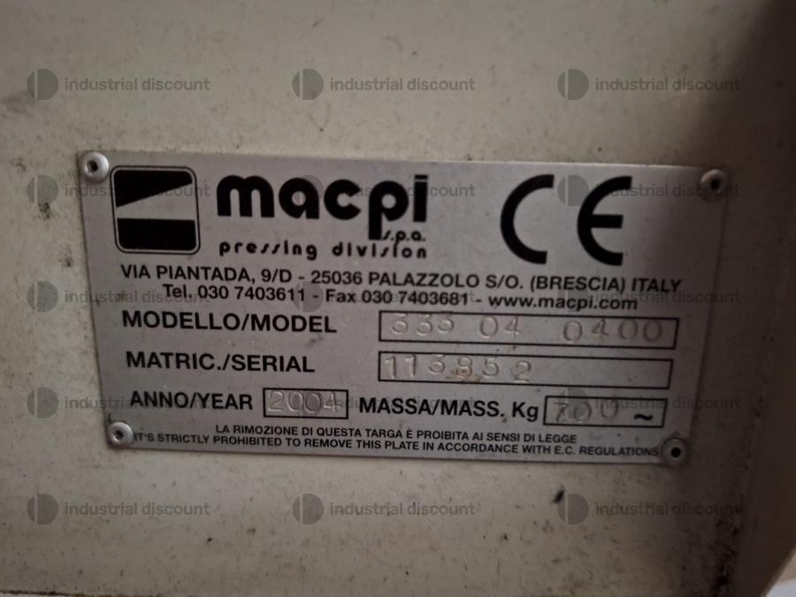 Pressa carosello Macpi avanti e dietro.NOTE PER RITIRO:- tempistica massima prevista per lo svolgimento delle attività di ritiro dal giorno concordato: 1 giorno