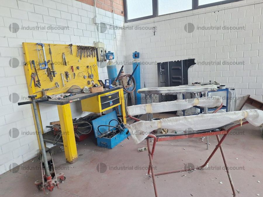 Banchi lavoro, saldatrice, Crick, Pannelli, e mobilio vario