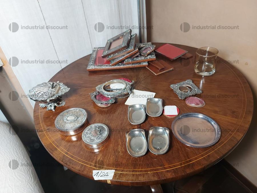 Articoli in argento '800' quali piatti, vassoi, frutte, scatoline, posaceneri, specchietto, etc., di marca Brandimarte, Buccellati e altri. (per un peso di kg, 3,050)Alcune quantità potrebbero non corrispondere. Si consiglia un’ispezione sul posto.NOTE PER RITIRO:- tempistica massima prevista per lo svolgimento delle attività di ritiro dal giorno concordato: 1 giorno Bene di proprietà di soggetto privato e pertanto operazione non effettuata nell'esercizio di impresa. Operazione esclusa dal campo di applicazione dell'IVA, in quanto non rientrante nel disposto dell'art. 1 del D.P.R. 633/72. Cessione con marca da bollo € 2,00. L'esclusione dal campo IVA si applica solo ai soggetti residenti in Italia.