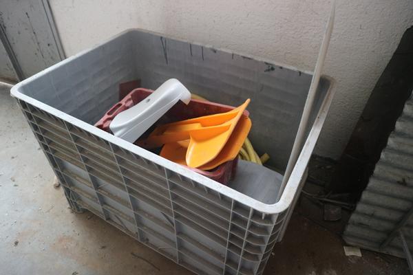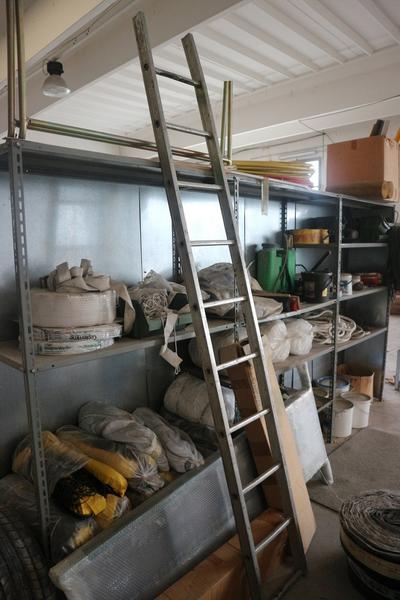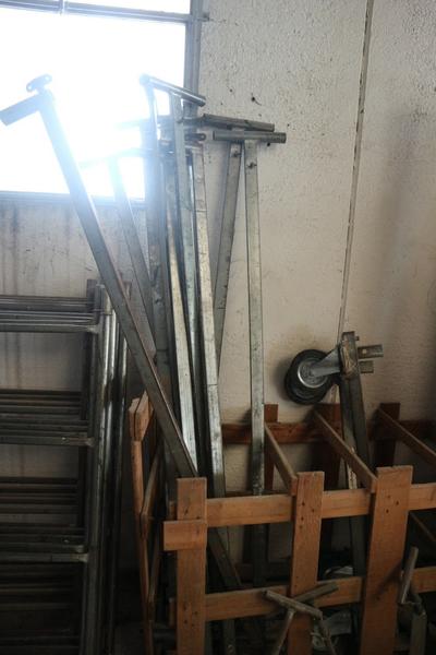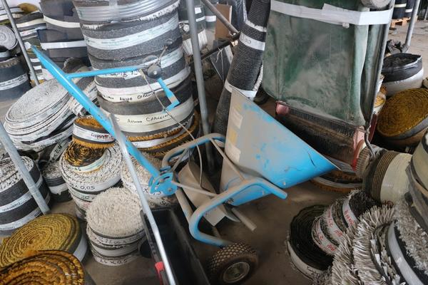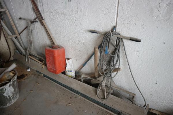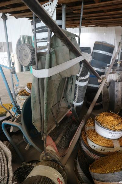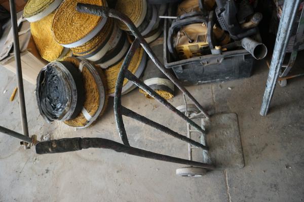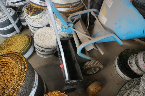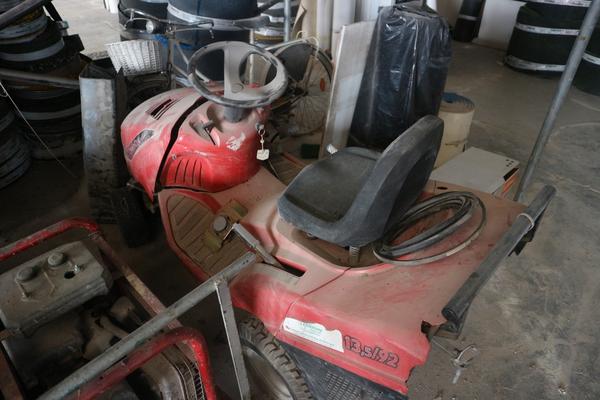 Aspiratore industriale, trabattello h 6 mt, granulatore autocostruito funzionante, n. 8 scaffalature leggere a 4 ripiani, baracca da cantiere smontata (autocostruita), rullo per campo da tennis, scala in alluminio 10 pioli, trapano a colonna non funzionante, vibrostaggia calcestruzzo elettrica a 2 manici con motori e gruppo trasformatore, partita di attrezzi composta da 2 paloni di alluminio, 3 spazzoloni, 1 spazzolone in acciaio, 3 rastrelli da giardino, 3 rastrelli normali, 1 rabiello, 1 piccone, 9 scope di saggina; telo in nylon circa 80/100 mt, una ventola, trattorino CASTELGARDEN rosso, generatore ANDIPRO, n. 2 soffiatori a spalla, soffiatore a mano, un carrello in ferro, un raccoglifoglie manuale, uno spandisabbia/spandiconcime a traino ROSATI, uno spandisabbia/spandiconcime manuale, n. 2 cuscini di protezione per parete in gommapiuma 250 x 100 con telo di rivestimento in pvc costruiti artigianalmente e senza marcatura CE, carrello in acciaio su 4 ruote portarotoli in plastica per imballaggio costruito artigianalmente senza marcatura CE, armadietto da spogliatoio a 2 scomparti, n. 2 lavagne portaordini con ganci 75 x 140, partita di materiale da scarto composta da 4 cassoni grigi in plastica rotti, pezzi di tubi in plastica, tubi corrugati, reti da cantiere, staffe in acciaio lavorato per calcestruzzo, ecc.
