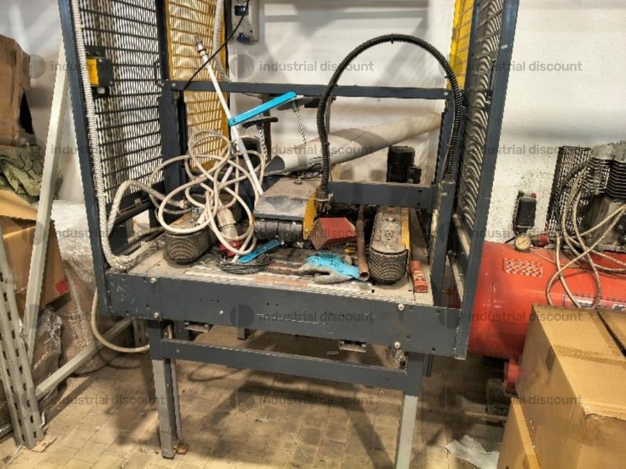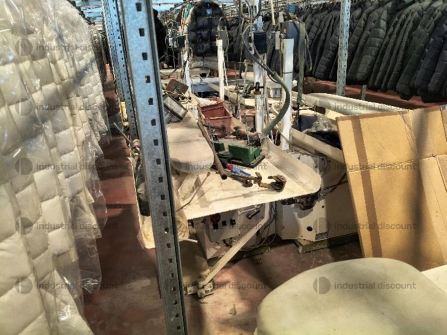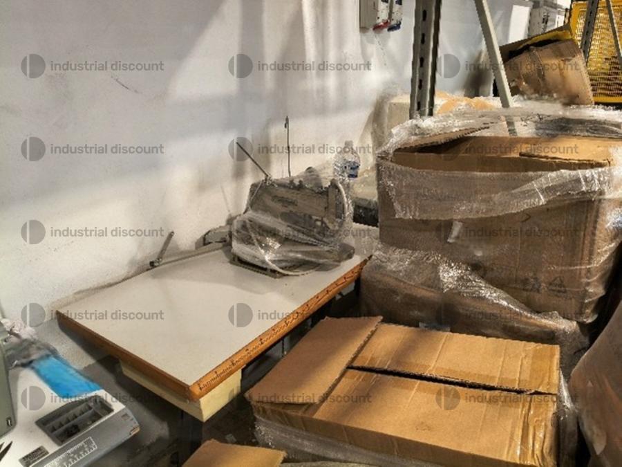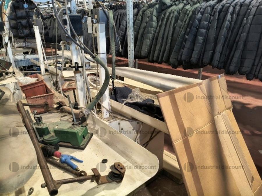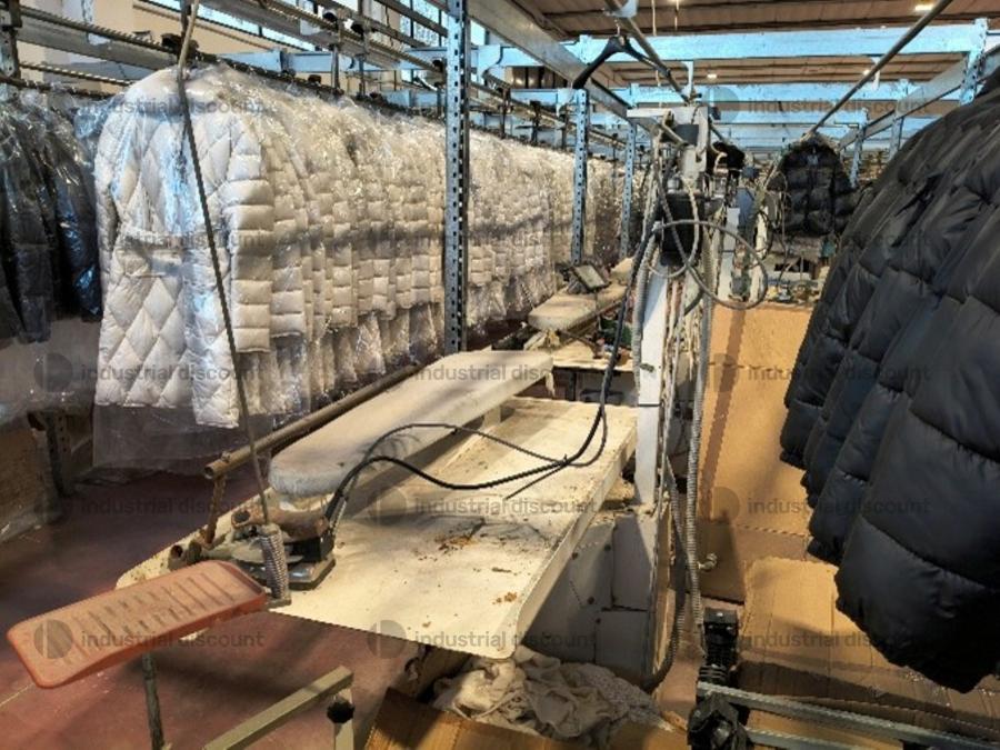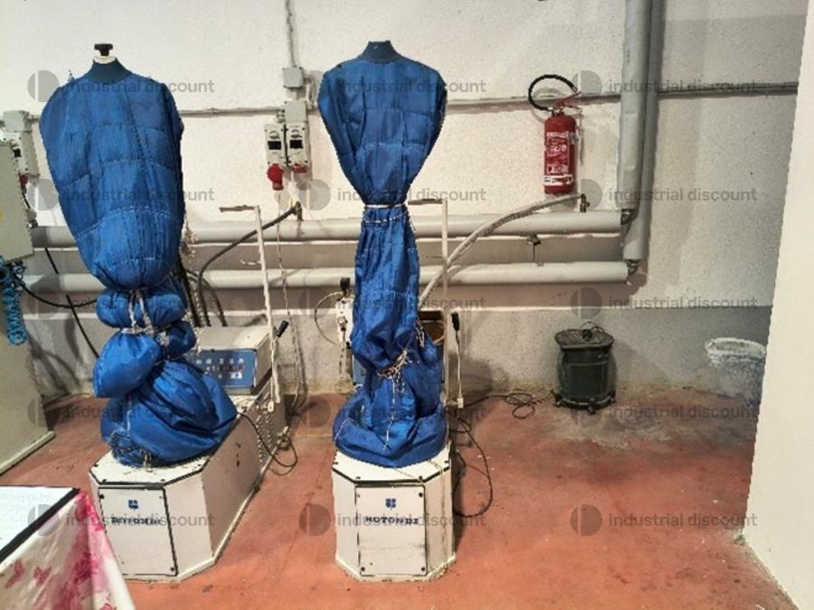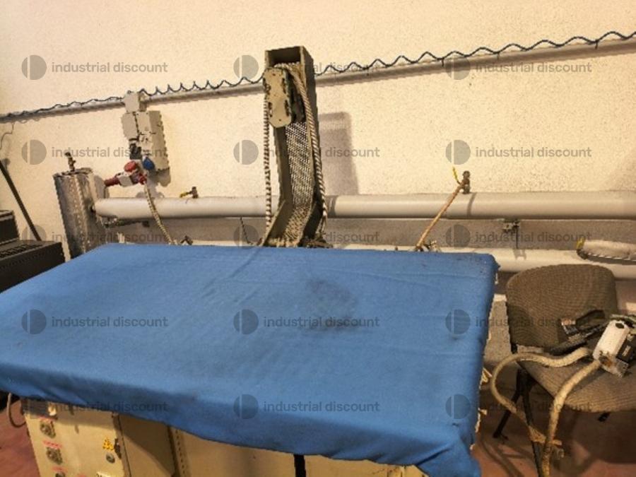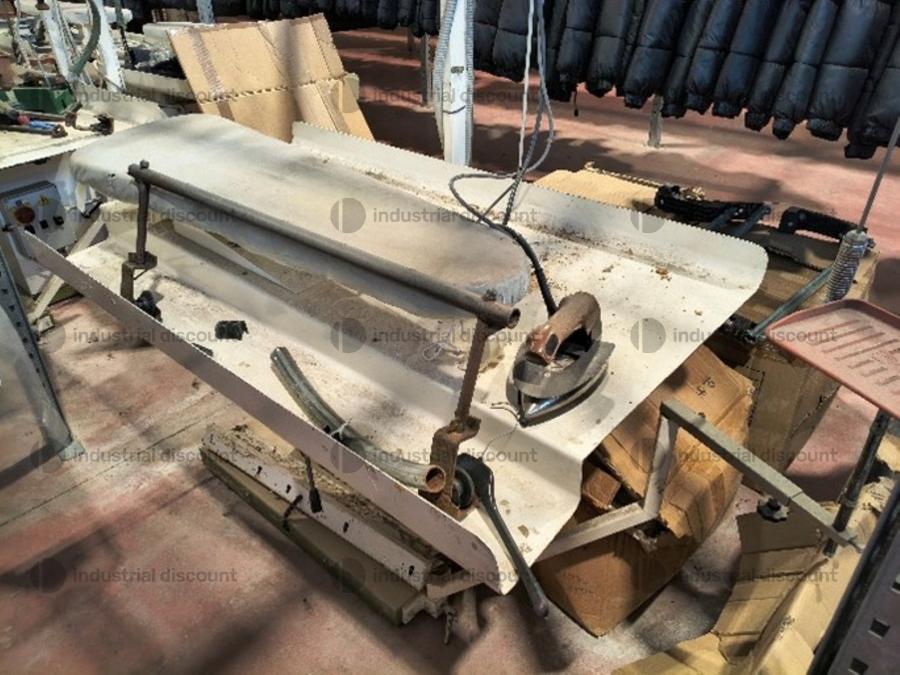 Lotto composto da attrezzatura industriale per stireria come macchina topper Macpi, banchi da stiro, pressa stiratrice, ecc..