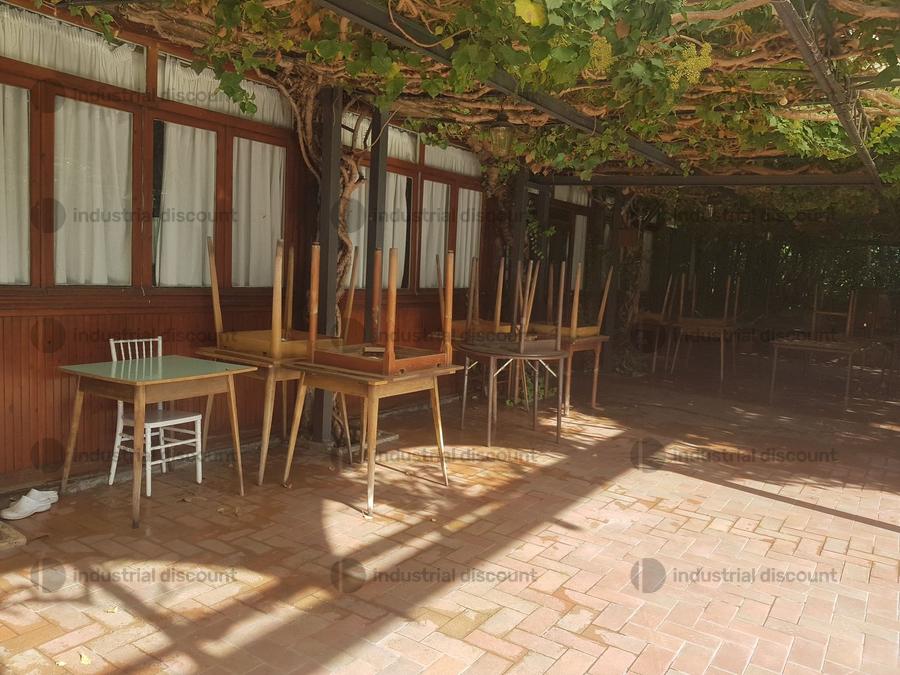 n. 14 tavoli di varie dimensioni e tipologia e sedie varie sia da interno che da esterno,