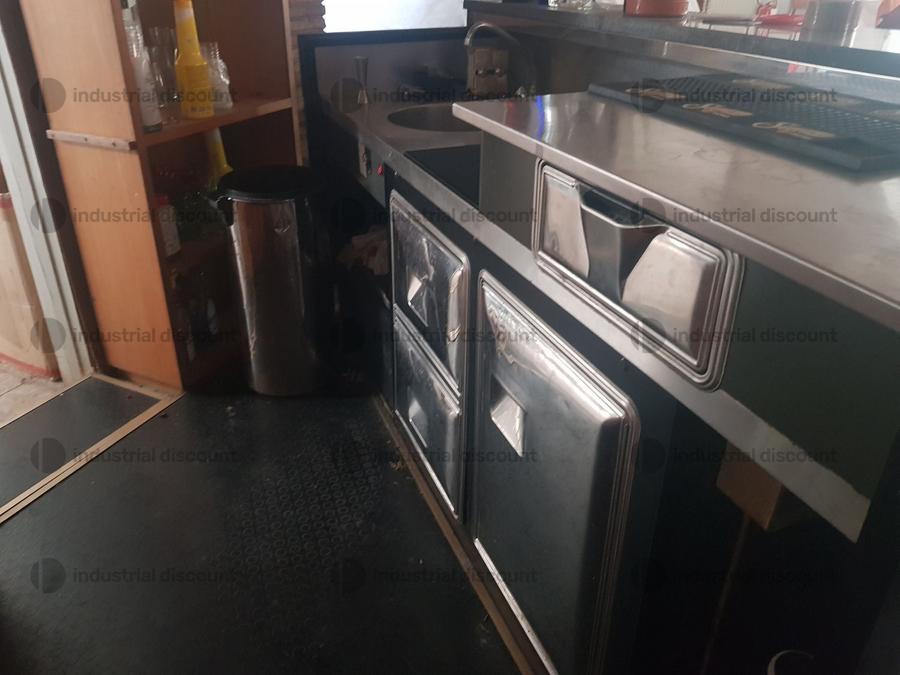 n. 1 frigorifero basso, zona lavaggio stoviglie, suppellettili varie come bicchieri/posate/vassoi,