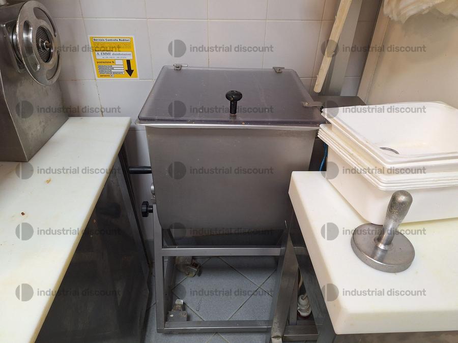 Lotto composto da attrezzature per la macelleria come banconi, tritacarni, affettatrici, etc..