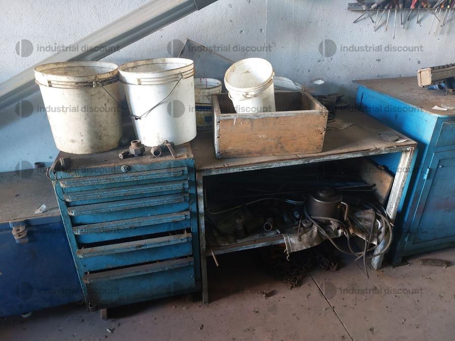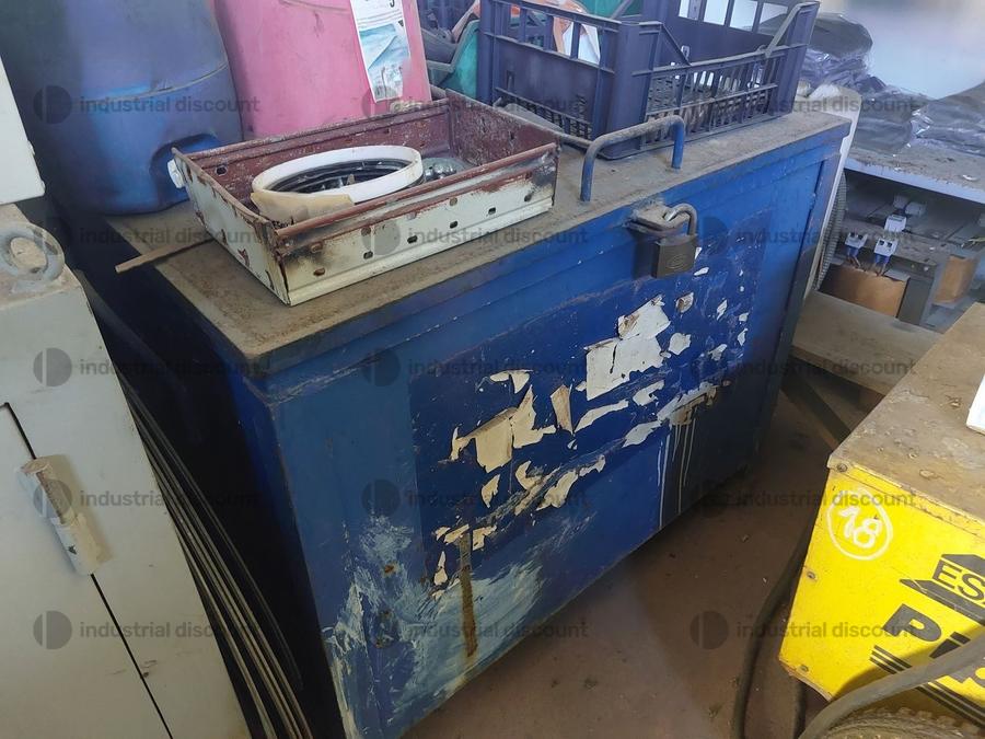 VENDITA DA AZIENDA ATTIVAArmadio da officina in metallo pesante con 2 ante e 2 cassetti. Montato su ruote ad alta capacità di carico. Dimensioni piano 900 x 600 mm, peso armadio 85 kgCondizioni articolo: non verificato. Dimensioni di trasporto approssimative: LxPxA 950 x 650 x 700 mmPeso approssimativo: 85kg.Sono previsti costi di imballaggio, movimentazione a magazzino e carico su camion della merce pari a 96,00 € + iva