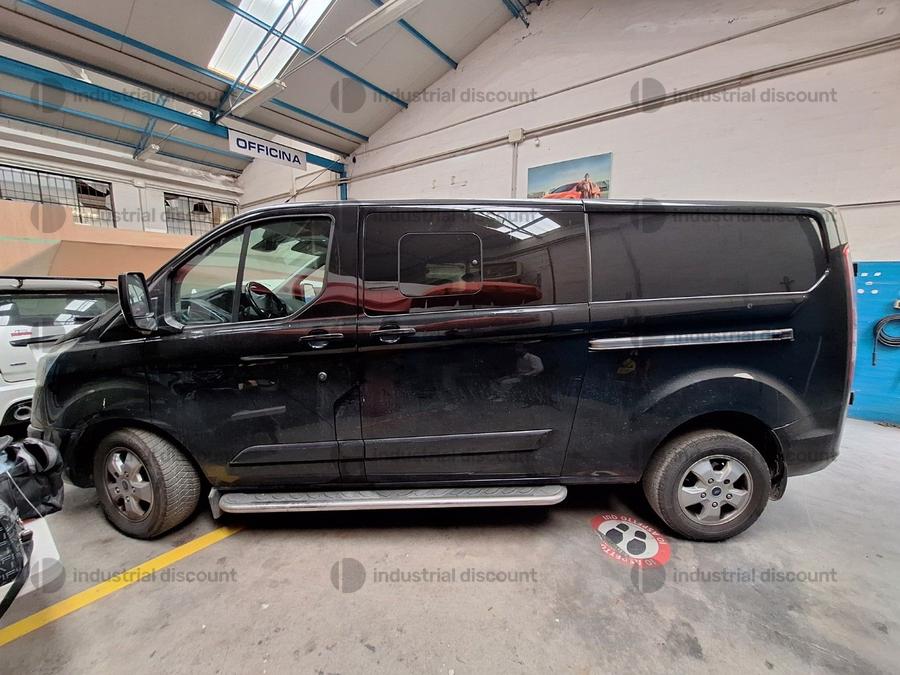 Autocarro Ford Transit custom targa FL062BN nero 2000cc diesel, 151000 km, ultima rev 15/12/23 ruota ant dx a terra, imm 2017.