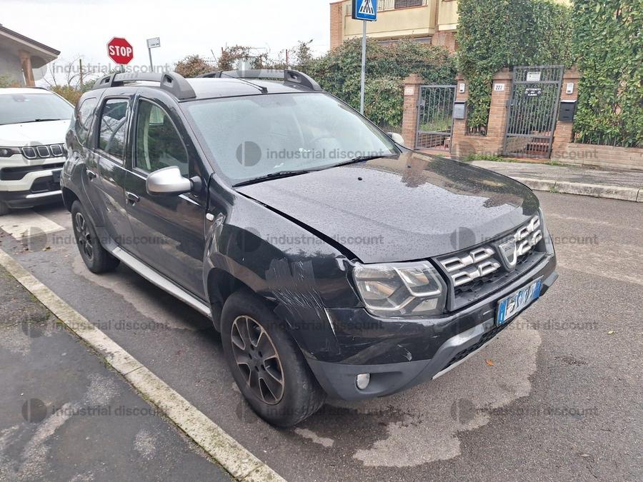Autoveicolo Dacia Duster imm. 2001, 1.5 cc, colore nero, 142430 km, danni alla carrozzerie frontale e sulle fiancate, luci abbaglianti non funzionanti.