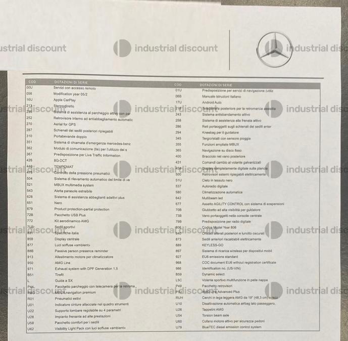 VENDITA DA AZIENDA ATTIVAAutovettura Mercedes Classe A 180, Automatical DieselAMG LINE Advance Plus+Pack km 0 (Km Attuali 6,00 circa)multiaccessoriata 85 kwEURO 6E-BisAuto immatricolata il 08/01/2026 TargataLa fatturazione dell’auto oggetto della vendita sarà effettuato con IVA A MARGINE ossia articolo 36 del D.L. 41/1995.(NON IVA ESPOSTA ma un importo unico e totale)Condizioni di fatturazione valida sia per Aggiudicatari Italiani che per Aggiudicatari EsteriScarica i documenti dalla sezione documentazione lotto