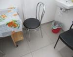 Banco in acciaio, sedie, tavolo e carrello