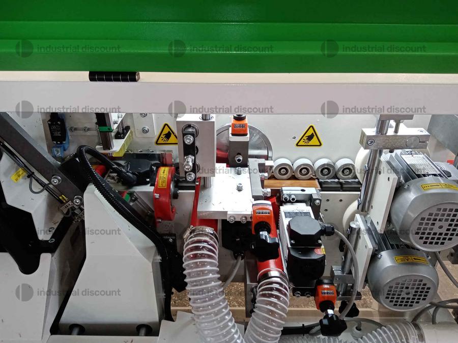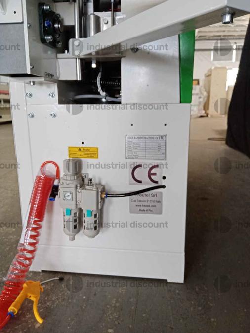 Motore principale 3,95 kW, Protezione contro le ustioni accidentali, guida bordo regolabile in altezza, rullo pre-nastro in gomma, doppi raschiatori piani su entrambi i lati del pannello, Testata bordo, spessore bordo 0,8 - 2 mm, spessore pannello min/max 12/43 mm, Velocità di lavoro: 7 m/min