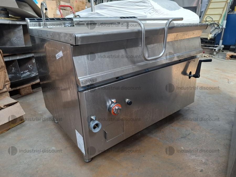 Brasiera Lotus CBG in acciaio, 120 litri, alimentazione a gas. Misure: L 120 x P 100 x H 105 cmNOTE PER RITIRO:- tempistica massima prevista per lo svolgimento delle attività di ritiro dal giorno concordato: 1 giorno- si consiglia di munirsi dei seguenti mezzi per il ritiro: Furgone e manovalanza per caricare