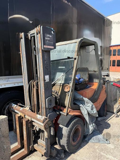 VENDITA DA AZIENDA ATTIVACarrello elevatore Linde H40DPortata: 40 QAnno 1989Ore: 2670Alimentazione: DieselE’ dotato di un motore diesel Deutz a 4 cilindri F 4L 912 raffreddato ad aria ed iniezione diretta. Cilindrata Litri 3,768 per una potenza di 67 CV.Carrello elevatore dalla costruzione compatta, basso baricentro, ottimale distribuzione del peso onde offrire la migliore stabilità.Usato poco, tenuto prevalentemente fermo. Il bene oggetto di vendita non risulta conforme alla normativa CE, di conseguenza potrà essere acquistato esclusivamente ai fini della sua eventuale messa a norma o destinato all'utilizzo come parti di ricambio; saranno ammessi a partecipare all’asta esclusivamente soggetti giuridici dotati di p.iva e qualificabili come Professionisti (che acquistano i beni solo per uso professionale e non per uso privato) ai sensi del d.lgs. 206/2005. Nello specifico la vendita è rivolta esclusivamente a soggetti riparatori e produttori di settore relativamente alla categoria merceologica in vendita.Si precisa che il bene è ubicato a Campodarsego (PD)Scarica i documenti dalla sezione documentazione lotto