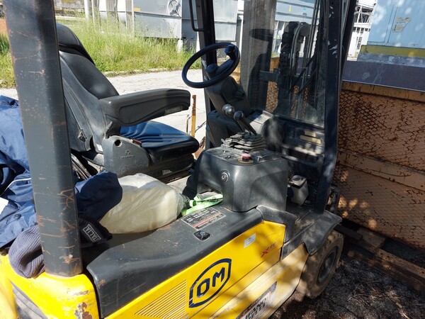 Carrello elevatore OM giallo con cabina neraNOTE PER RITIRO:- tempistica massima prevista per lo svolgimento delle attività di ritiro dal giorno concordato: 1 giorno