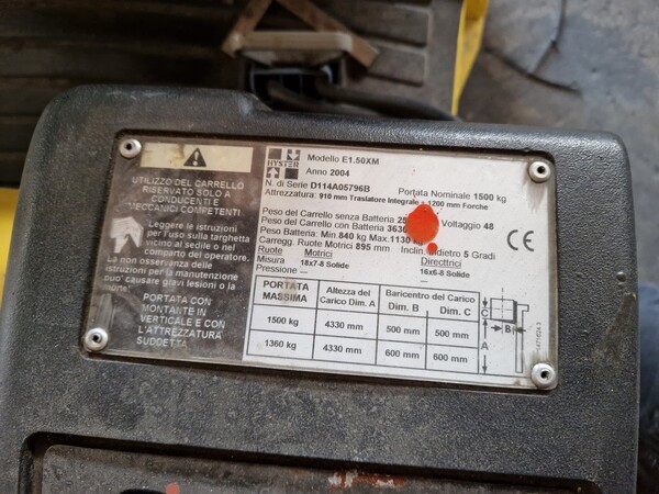 VENDITA DA AZIENDA ATTIVACarrello elevatore Hyster A1.50XL, ore di lavoro circa 2524, carica batteria incluso, batteria 24volt, forche, 15 qliIl bene oggetto di vendita non risulta conforme alla normativa CE, di conseguenza potrà essere acquistato esclusivamente ai fini della sua eventuale messa a norma o destinato all'utilizzo come parti di ricambio; saranno ammessi a partecipare all’asta esclusivamente soggetti giuridici dotati di p.iva e qualificabili come Professionisti (che acquistano i beni solo per uso professionale e non per uso privato) ai sensi del d.lgs. 206/2005. Nello specifico la vendita è rivolta esclusivamente a soggetti riparatori e produttori di settore relativamente alla categoria merceologica in vendita.