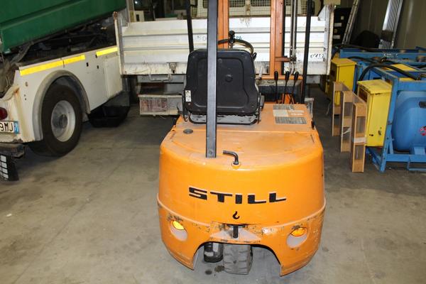 Carrello elevatore Still Saxby mod. EGV 1250, matr. 14940568342.Anno 1990, con caricabatterie.NOTE PER RITIRO:- tempistica massima prevista per lo svolgimento delle attività di ritiro dal giorno concordato: mezza giornata