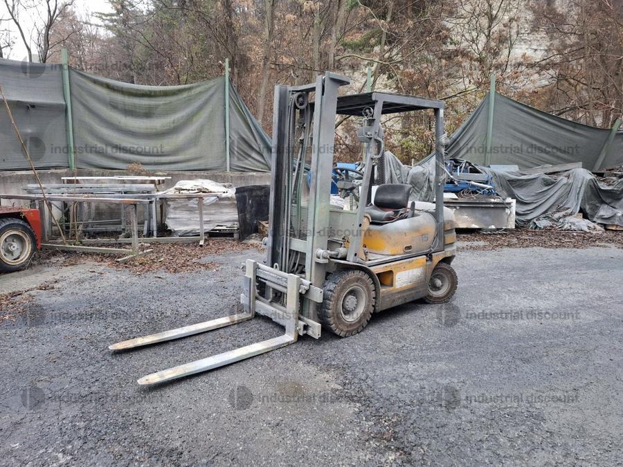 Carrello elevatore marca Hyundai modello HDF30II n. serie 1525 portata 4400 kg anno 2000Funzionante al momento della sosta forzata, fermo da diversi anni.Scarso stato di usura, necessita di interventi di recupero.NOTE PER RITIRO:- tempistica massima prevista per lo svolgimento delle attività di ritiro dal giorno concordato: 1 giorno