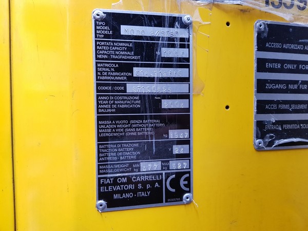 Muletto elettrico OM E/3-17.5.N con carica batterie, 14360 ore di lavoroNOTE PER RITIRO:- tempistica massima prevista per lo svolgimento delle attività di ritiro dal giorno concordato: 1 giorno