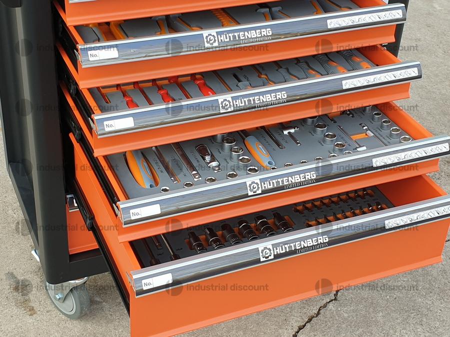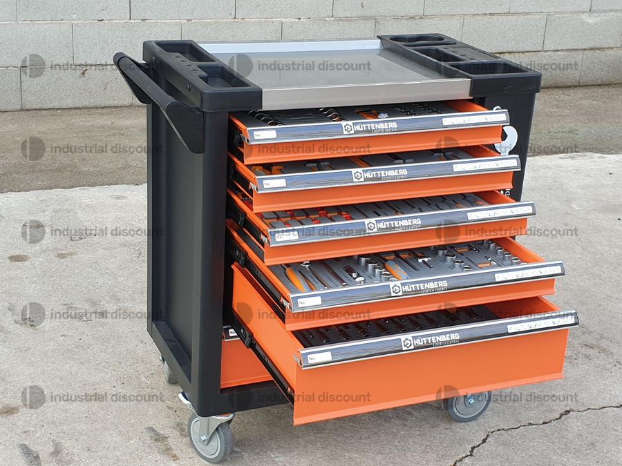 Carrello porta utensili Huttenberg, completo di tutti gli attrezzi come in fotografia, qualità chiavi chrome vanadium.