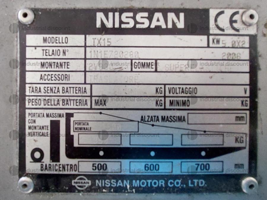 Carrello elevatore - marca NISSAN - mod. TX15 - n° telaio 1N1E720280 - anno 2006 - ore di lavoro alla data del 06/02/2024 circa 14300