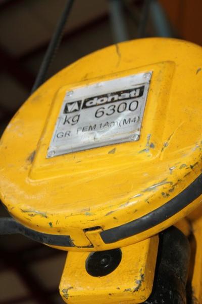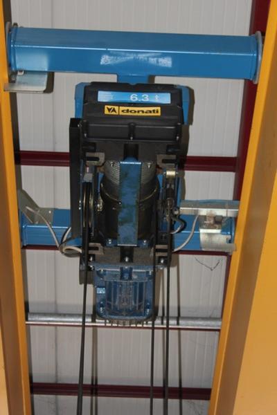 Gru a ponte Omis modello GSB 6.3, matricola 17960, portata 6.3T, scartamento 14.22 m, tipo bitrave, anno di costruzione 2006, conforme alle direttive CE. Con pulsantiera n. G31508 e paranco Donati Drh 24 L1.M, matricola 0435271001.