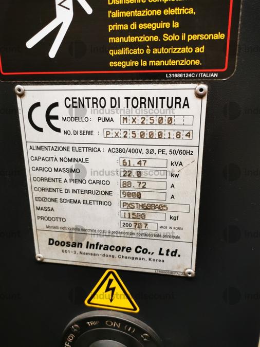 Centro di tornitura marca Doosan modello PUMA MX 2500, anno 2007.