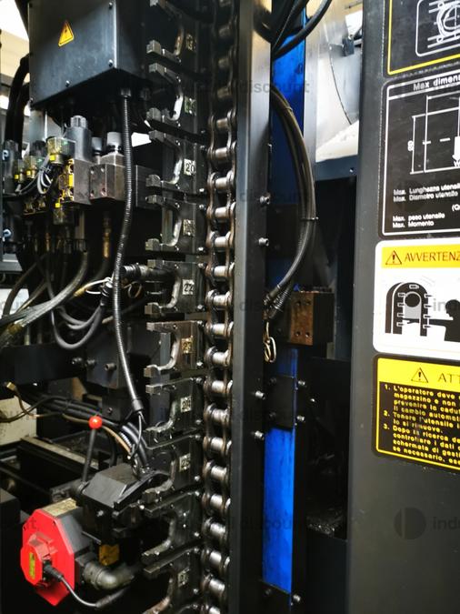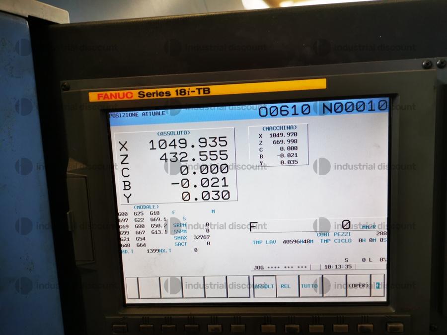 ASA 8 da 3.500 giri/min; testa di tornitura/fresatura con rotazione asse B +/- 120; attacco porta utensile capto C6; velocità max. rotazione utensile 10.000 giri/min; magazzino utensili 40 posizioni; cnc FANUC 18
