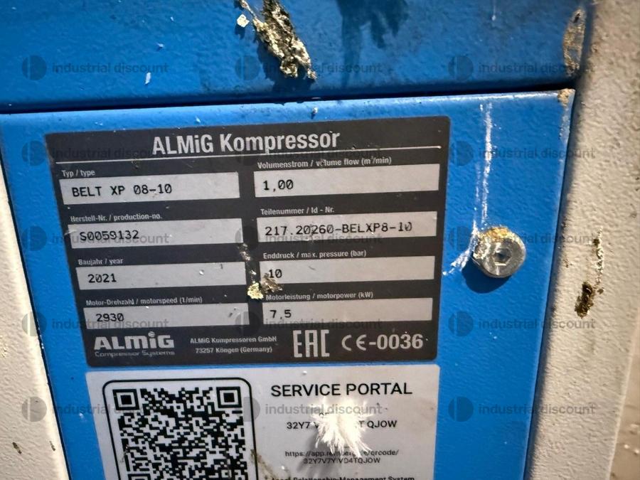 Compressore ALMIG/MTA con essiccatore serbatoio mod. BELT XP08-10/DE12, 2007 e 2021, CE.