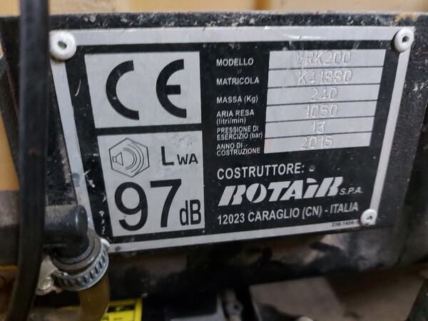 Compressore mobile da cantiere, marca Elmag Rotair, mod. VRK200, matr. K41880, 13 Bar, anno di costruzione 2015