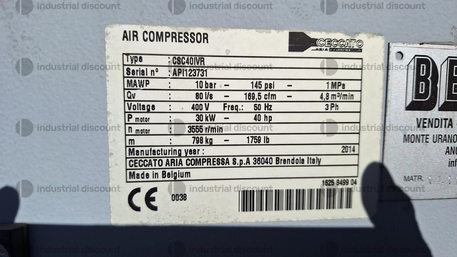 - n. 1 compressore a vite Ceccato tipo CSC 40 IVR, matr. API123731, anno 2014 CE