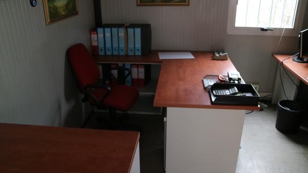 - Container doppio ad uso ufficio con all'interno mobili per ufficio (scrivania, cassettiera, sedie, poltrona),