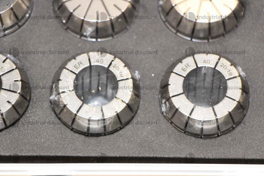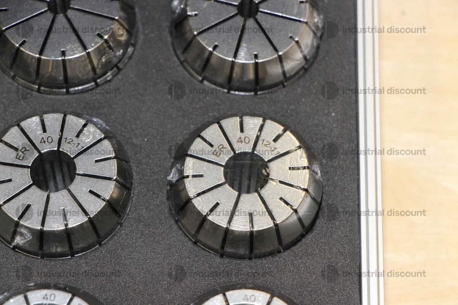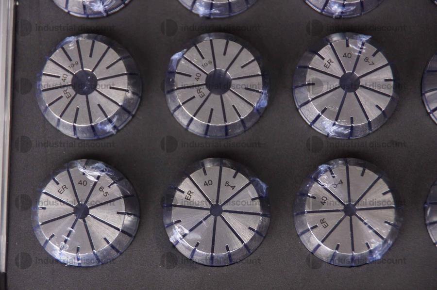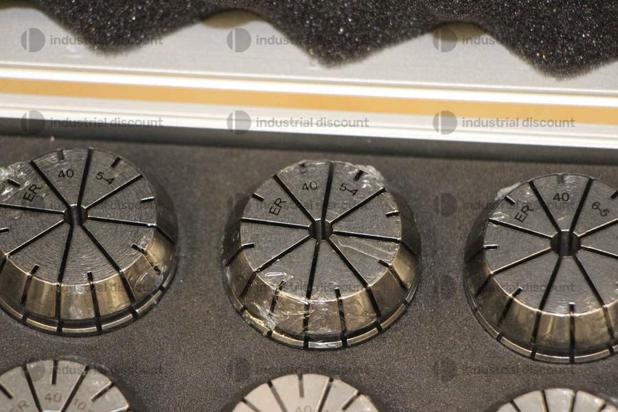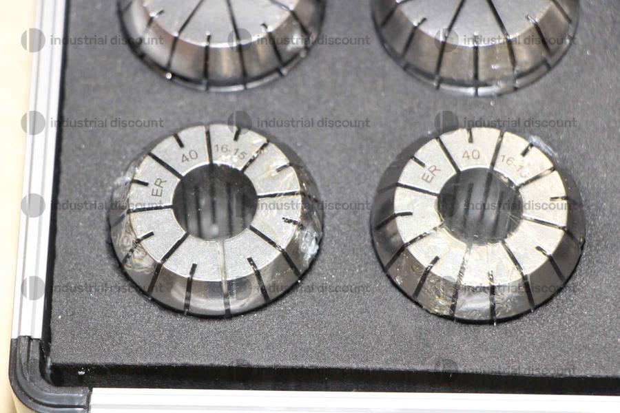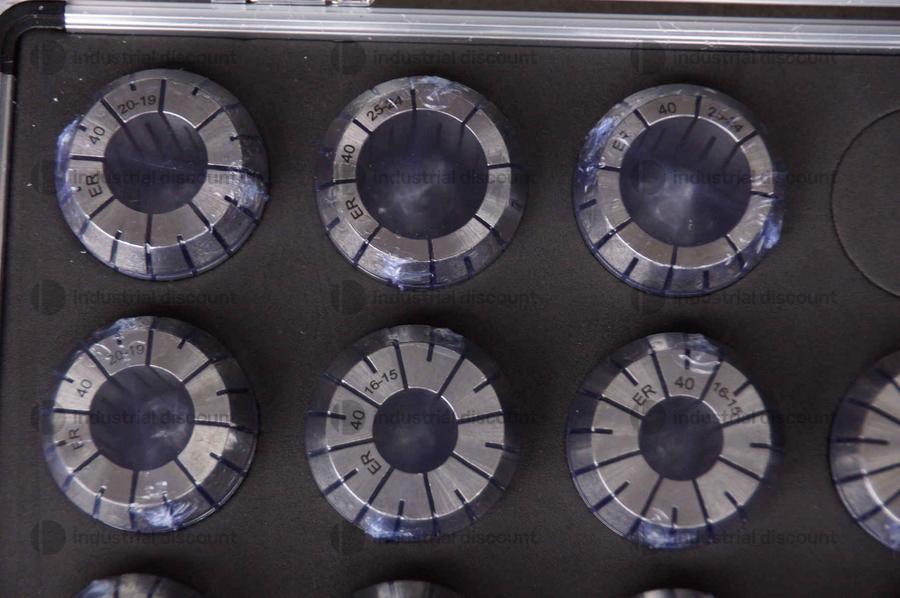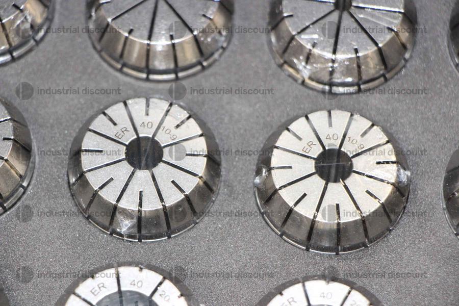 Un singolo ATT0006 corrisponde a: Pinza ER 40 - set da 18 pezzi - Set di 18 pinze ER40 ad alta precisione da 4 mm a 26 mm. Progettate per lavorazioni CNC come incisione e fresatura. Fornite in una robusta custodia metallica per una movimentazione e un'organizzazione sicure.