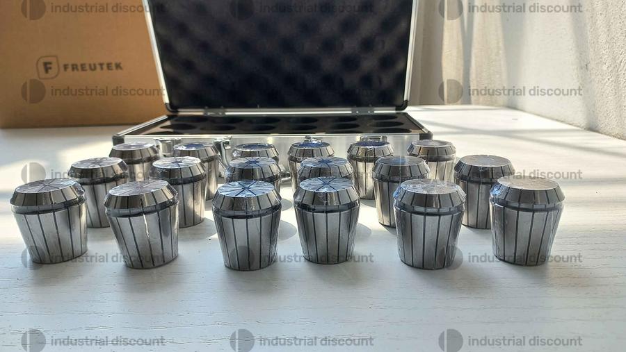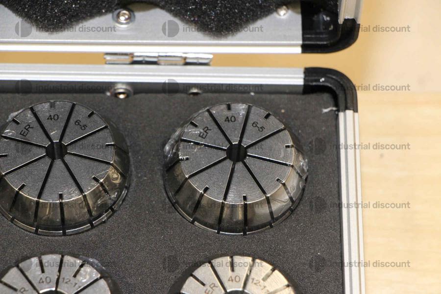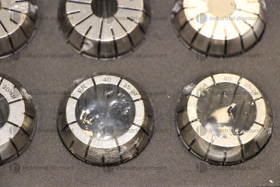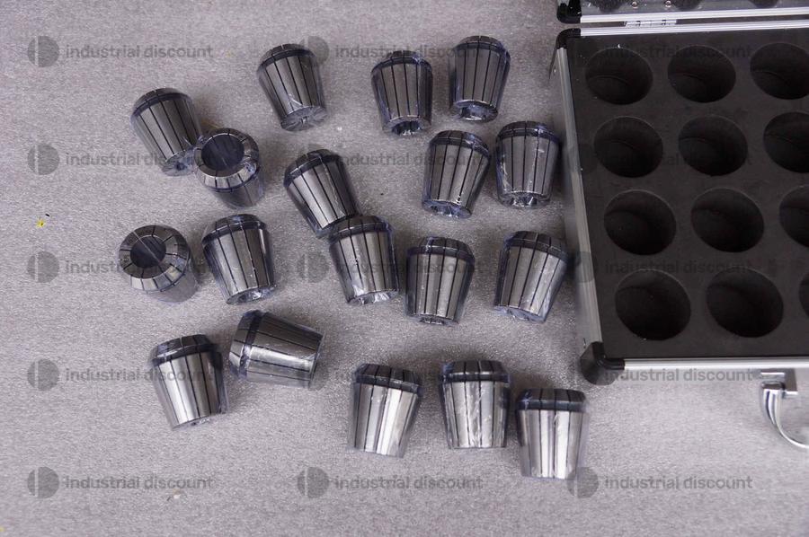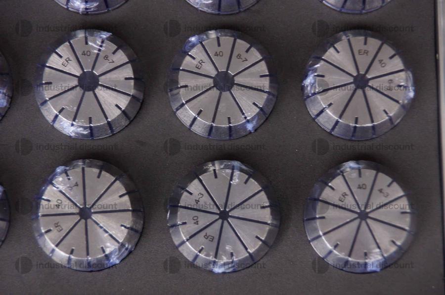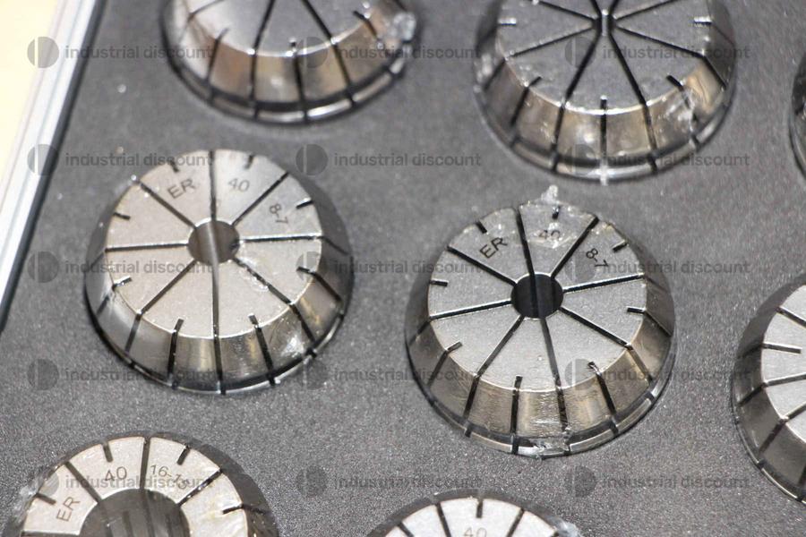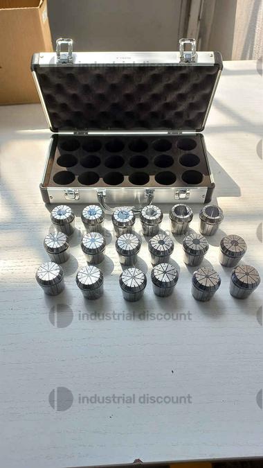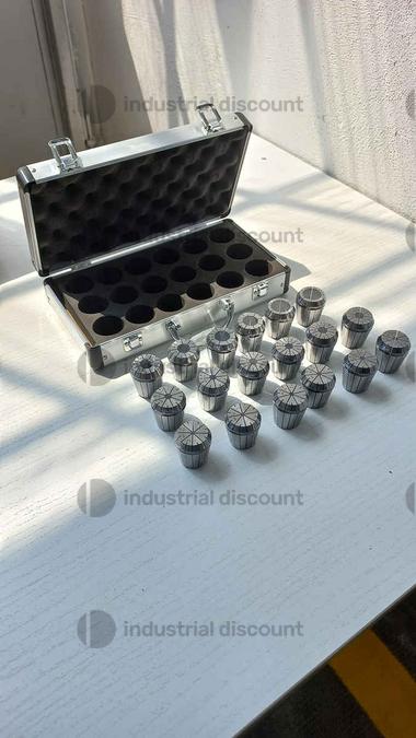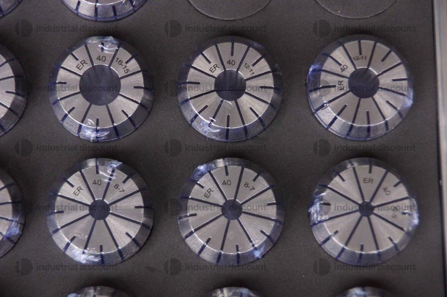 Un singolo ATT0006 corrisponde a: Pinza ER 40 - set da 18 pezzi - Set di 18 pinze ER40 ad alta precisione da 4 mm a 26 mm. Progettate per lavorazioni CNC come incisione e fresatura. Fornite in una robusta custodia metallica per una movimentazione e un'organizzazione sicure.