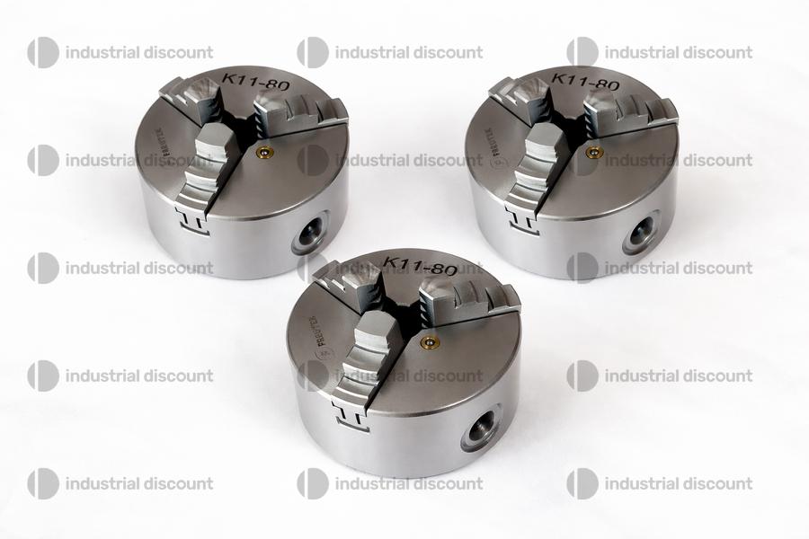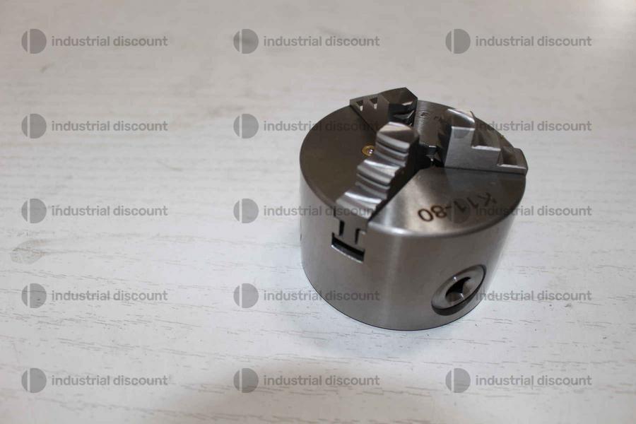 Un singolo ATT0026 corrisponde a: Mandrino per Tornio K11 – 80 - Mandrino per tornio autocentrante 3+3 griffe da 80mm, corpo in ghisa rettificata, chiusura con anello elicoidale, serraggio manuale concentrico, griffe temprate
