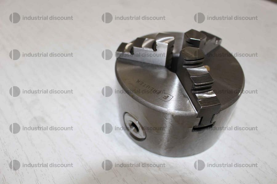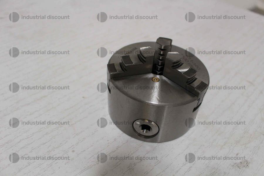 Mandrino per tornio autocentrante 3 + 3 griffe 100 mm, 3500 giri/min, corpo in ghisa rettificata, chiusura con anello elicoidale, serraggio manuale concentrico, griffe temprate