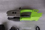 Reggiatrice a batteria per reggia in poliestere con saldatura a vibrazione.