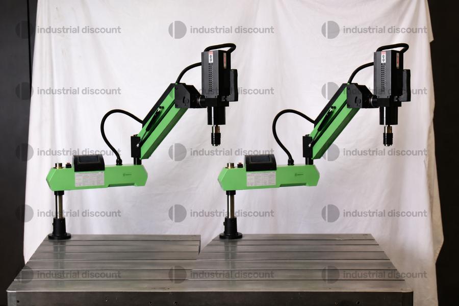 Lotto composto da n. 2 FREUTEK LON0011/D confezionati insieme. Un singolo LON0011/D corrisponde a: Maschiatrice filettatrice elettrica DIN M6-24 (Testa universale) - La maschiatrice è servoassistita, con protezione intelligente della coppia, per superare i limiti tradizionali del tornio, della foratura o della maschiatura manuale. Grazie al design meccanico avanzato e alla varietà di processi che utilizzano la fusione in stampo, la rigidità complessiva è forte, durevole e indeformabile. Il touch screen ad alta definizione è semplice e intuitivo. Può eseguire lavorazioni verticali e orizzontali su parti complesse e pesanti, localizzandole rapidamente e processandole con precisione. Cambio di velocità continuo, manuale, automatico, con tre diverse modalità di lavoro. La modalità automatica può controllare efficacemente la profondità di contatto, senza il pulsante di azionamento, controllo automatico tramite regolatore di profondità. Posizionamento rapido e ripetuto, velocità di maschiatura, elevata efficienza produttiva. Tensione: 220 V, Potenza: 1200 W; Monofase, Velocità: 0-200 giri/min. CAMPO DI MASCHIATURA: DIN371: M6, M8, M10; DIN376: M12, M14, M16, M18, M20, M22-24