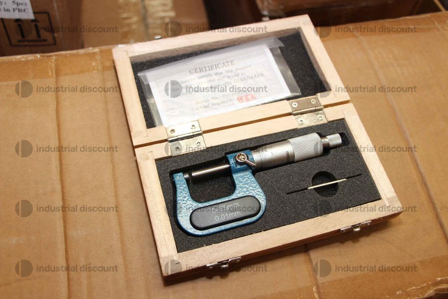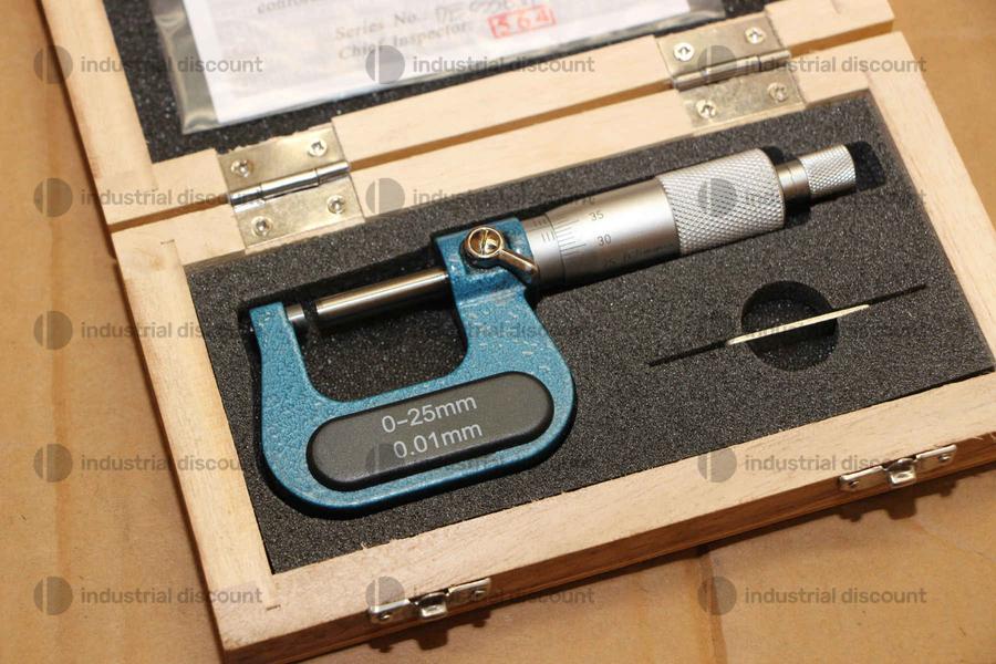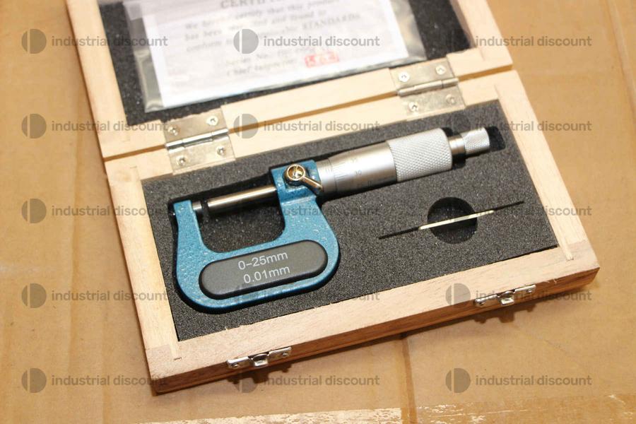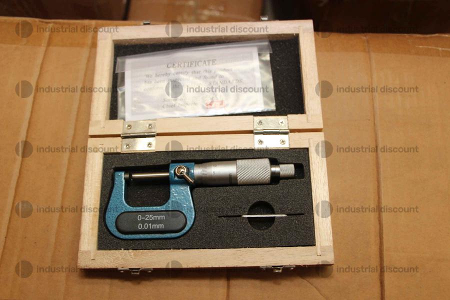 Un singolo SDM0049 corrisponde a: Micrometri esterni 0-25mm x 0,01 - Micrometro professionale per esterni con campo di applicazione 0-25 mm, risoluzione 0,01 mm. Il blocco positivo del mandrino mantiene le incudini in posizione per garantire una registrazione accurata della misura. La costruzione di alta qualità combinata con la facilità d'uso rendono questo tipo di micrometro analogico particolarmente adatto per operatori di controllo, tecnici d'officina, riparatori e personale di assistenza. Viene fornito in una custodia di legno per la conservazione e il trasporto. -