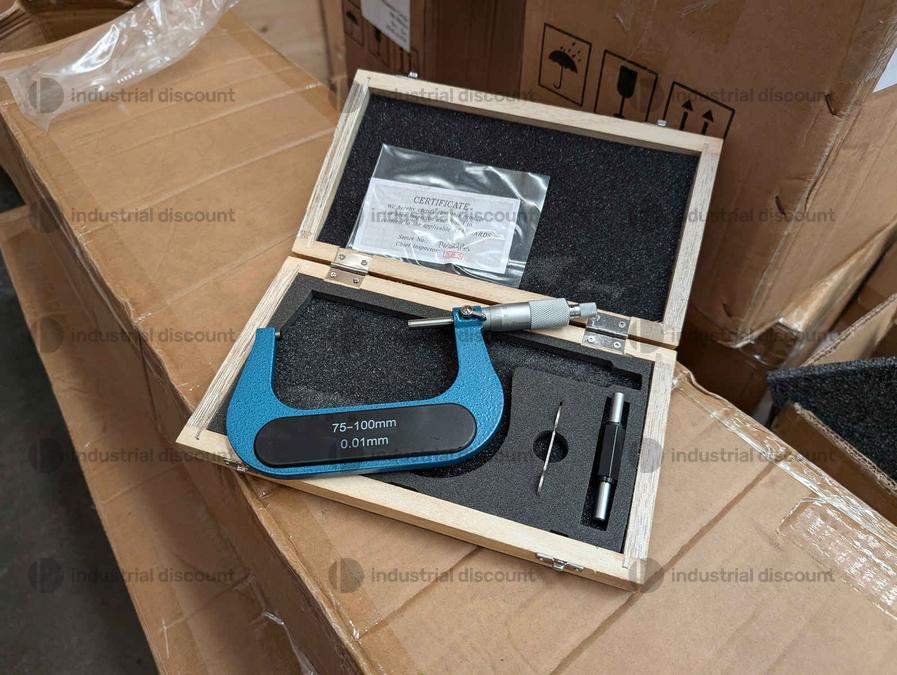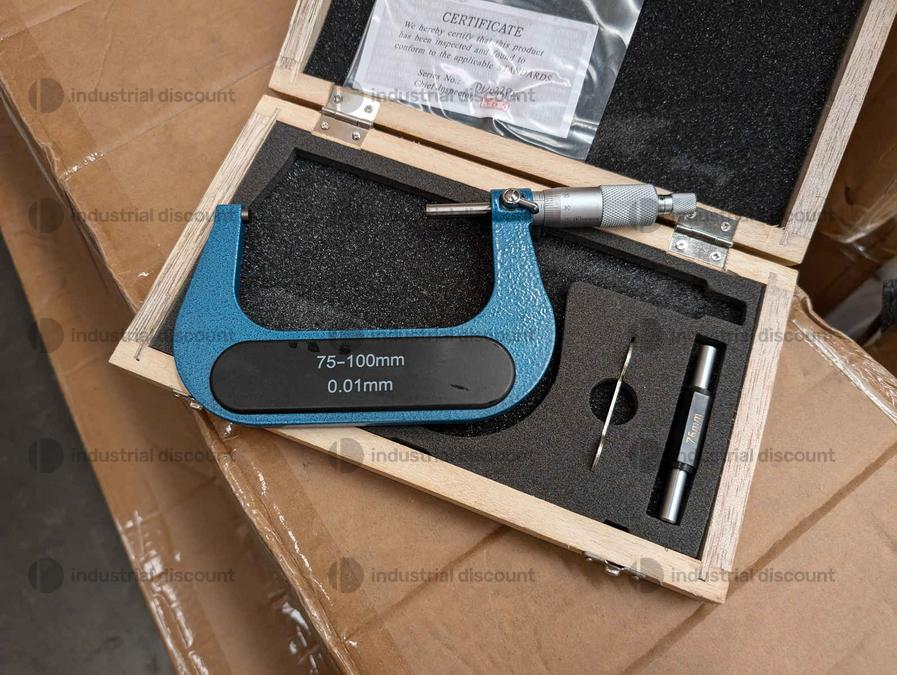 Un singolo SDM0052 corrisponde a: Micrometri esterni 75-100mm x 0,01 - Micrometro professionale per esterni con campo di applicazione 75-100 mm, risoluzione 0,01 mm. Il blocco positivo del mandrino mantiene le incudini in posizione per garantire una registrazione accurata della misura. La costruzione di alta qualità combinata con la facilità d'uso rendono questo tipo di micrometro analogico particolarmente adatto per operatori di controllo, tecnici d'officina, riparatori e personale di assistenza. Viene fornito in una custodia di legno per la conservazione e il trasporto.