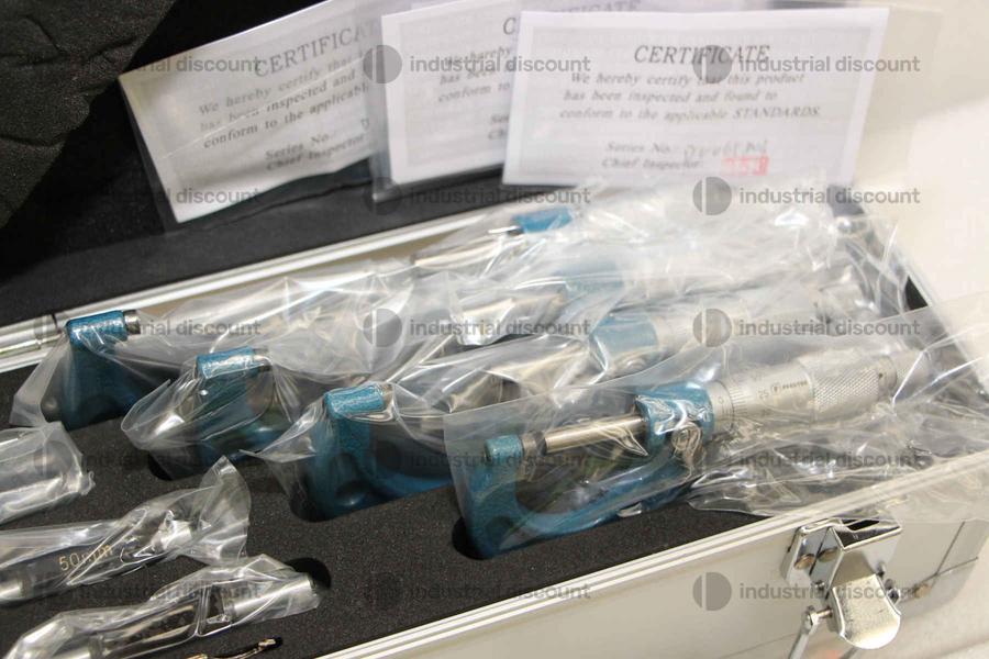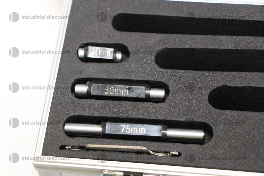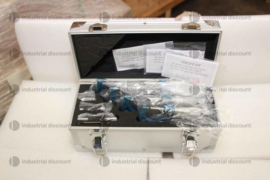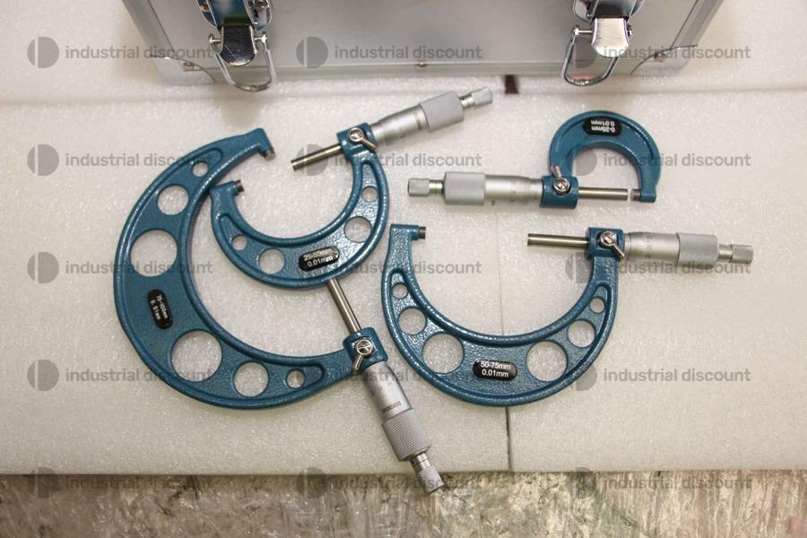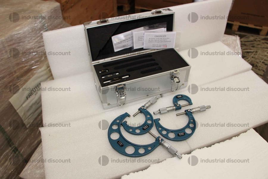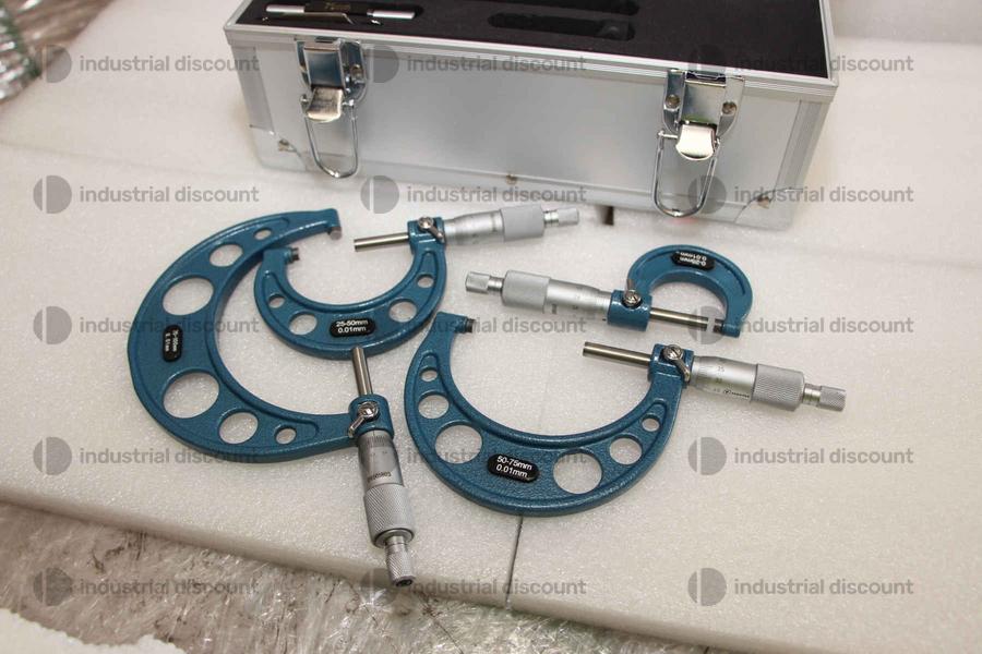 Un singolo SDM0054 corrisponde a: Set di 4 micrometri centesimali esterni 0-100 x 0,01 mm - Set composto da 4 micrometri centesimali per misure da 0 a 100 mm. Misure: 0-25 mm; 25-50 mm; 50-75 mm; 75-100 mm. Certificato incluso.