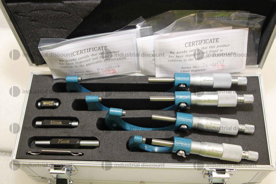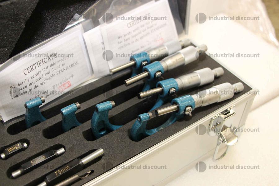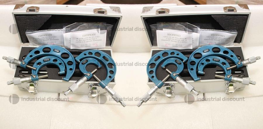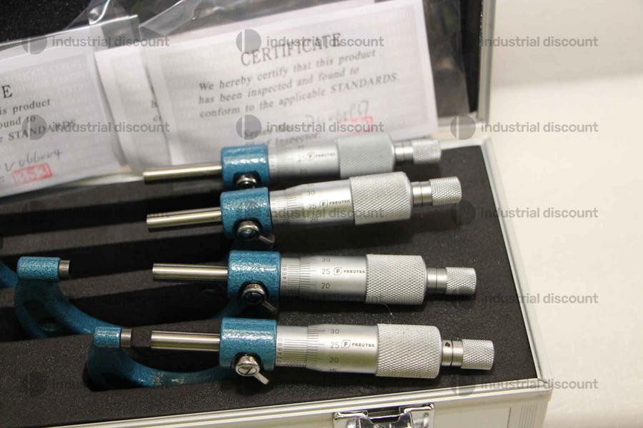 Lotto composto da n. 2 FREUTEK SDM0055 Set di 4 micrometri, confezionati insieme. Un singolo SDM0055 corrisponde a: Set di 4 micrometri esterni millesimali 0-100 x 0,001 mm - Set composto da 4 micrometri millesimali per misure da 0 a 100 mm. Misure: 0-25 mm; 25-50 mm; 50-75 mm; 75-100 mm. Certificato incluso.