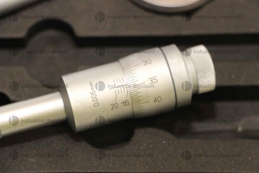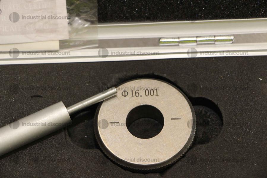 Un singolo SDM0059 corrisponde a: Micrometro interno a 3 punti 16-20 x 0,05 mm - Micrometro a tre punte per misure interne da 16 a 20 mm. Diametro 10,8 mm, profondità fino a 74 mm, altezza delle punte di misura 6,3 mm. Anello di calibrazione da 16 mm incluso. Precisione 4 µm, risoluzione 0,005 mm. Certificato incluso