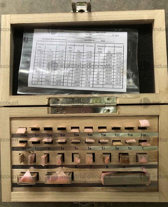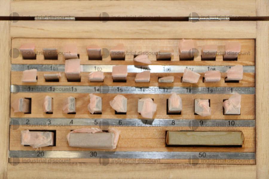 Un singolo SDM0066 corrisponde a: Set di blocchi di misura Johnson 32 x 15 DIN861 - Set composto da 32 blocchetti di riscontro in acciaio, misure da 1,005 mm a 50 mm. Temperatura di riferimento di esercizio 20°C. Norma DIN861. Con scatola di legno inclusa.