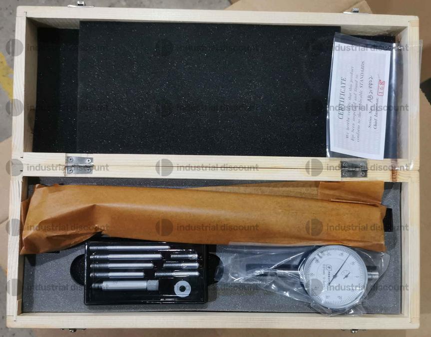 VENDITA DA AZIENDA ATTIVA Lotto composto da n. 4 FREUTEK SDM0068 Alesametro confezionati insieme. Un singolo SDM0068 corrisponde a: Alesametro 50-160mm x 0,01mm Profondità: 200mm - Campo di misura: 50 - 160 mm Risoluzione di misura: 0,01 mm Profondità 200 mm Alesametro completo di indicatore, prolunghe e incudine. - DIMENSIONI APPROSSIMATIVE DEI 4 ARTICOLI IMBALLATI INSIEME: 370 x 580 x 65 mm; PESO: 8 kg. Le dimensioni potrebbero variare in base al tipo di imballaggio necessario, al peso ed al volume degli articoli. Sono previsti costi di imballaggio, movimentazione a magazzino e carico su camion della merce pari a 10 €
