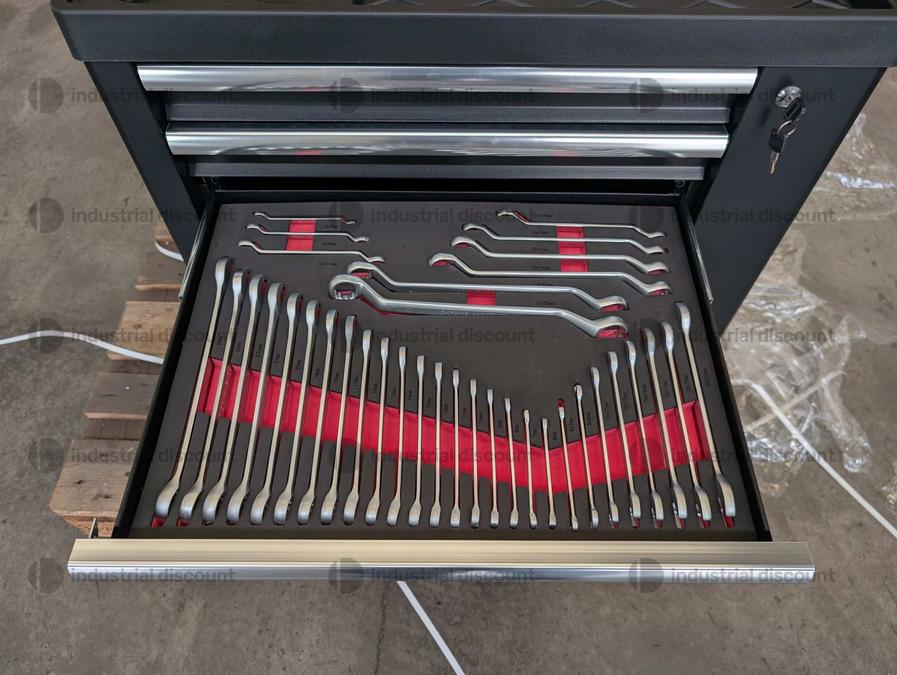 Carico massimo del carrello 475 kg, carico massimo del cassetto 35 kg. 7 cassetti con serratura centralizzata.