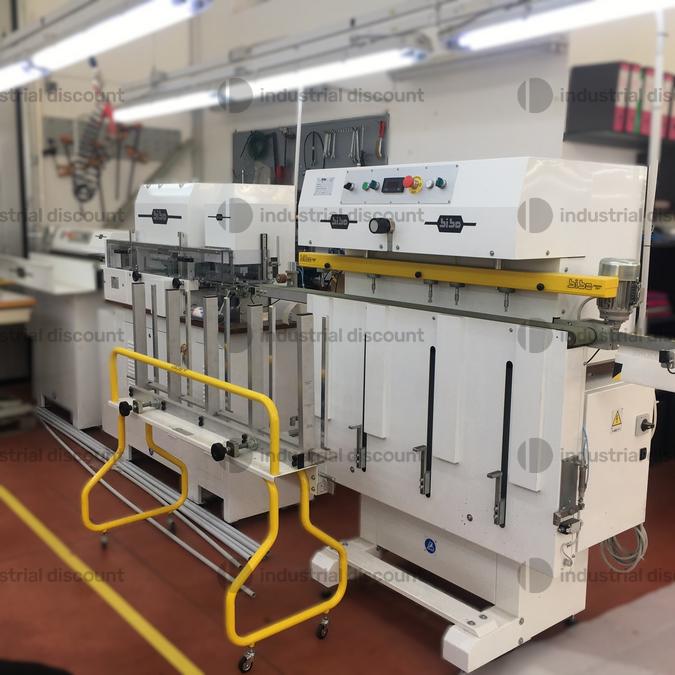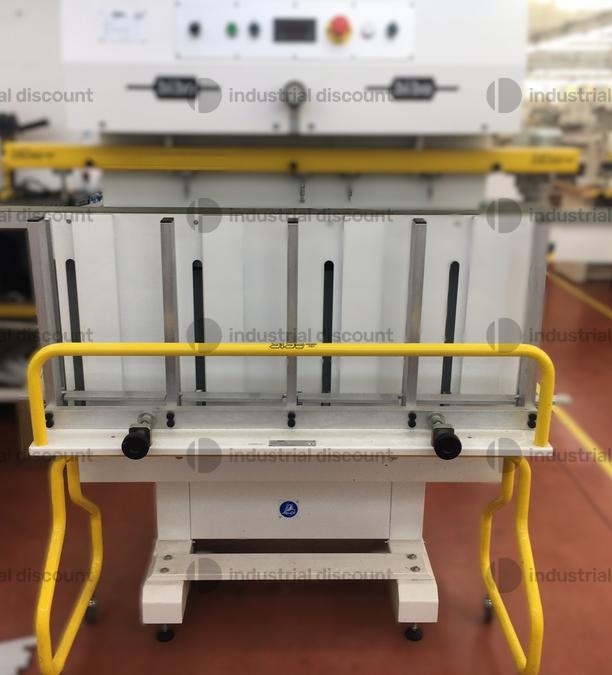 La fustellatrice dispone anche di stampatore programmabile pneumatico ed è completa di caricatore e scaricatore automatico + due carrelli manuali.