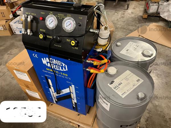 VENDITA DA AZIENDA ATTIVALotto composto da :-N. 1 fusto 60l olio delphi 80w/90-N. 1 fusto 60l olio delphi 15w/40-N. 2 conf. 12 Pz. x 1 kg pasta lavamani-N. 1 tanica 25l antigelo KFS11-N. 4 conf. 6 Pz vernice ral-N. 4 conf. 12 pz addittivo oil smoke reducer sonx-N. 1 macchina cambio olio magneti marelli nuova