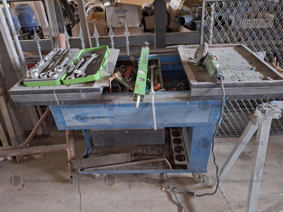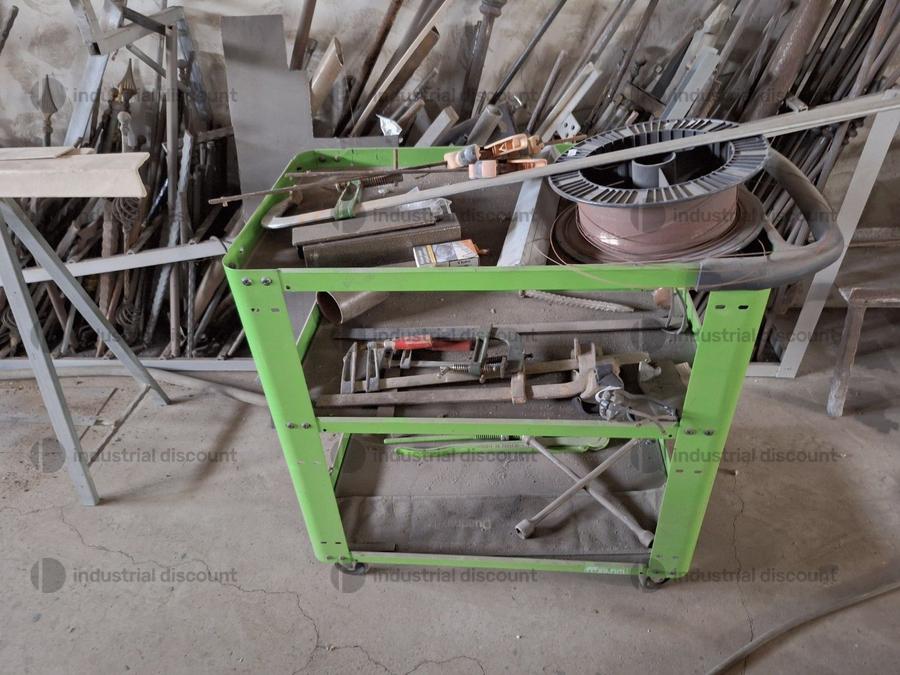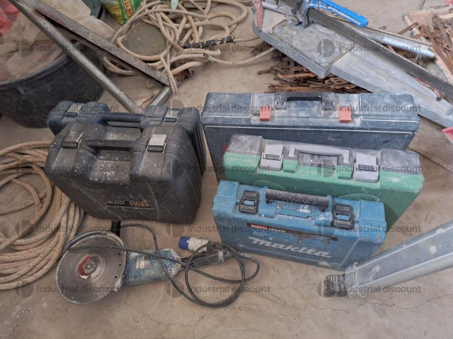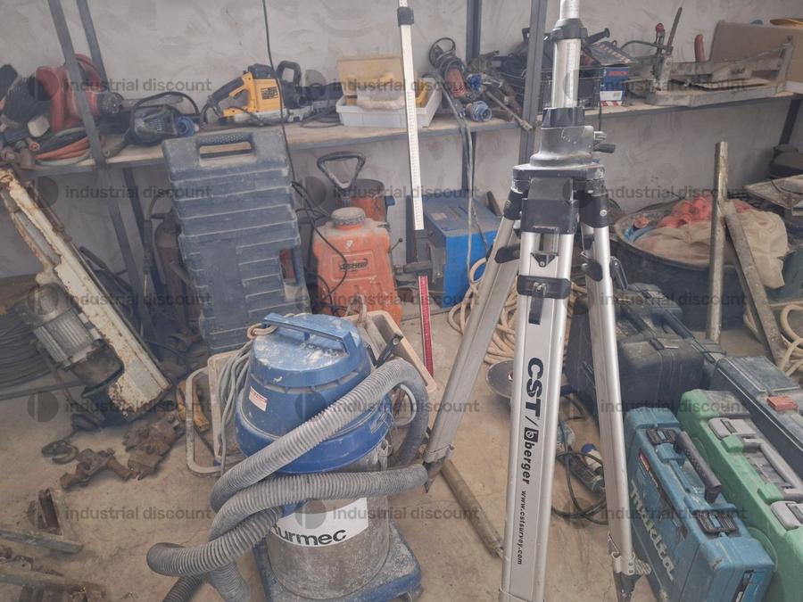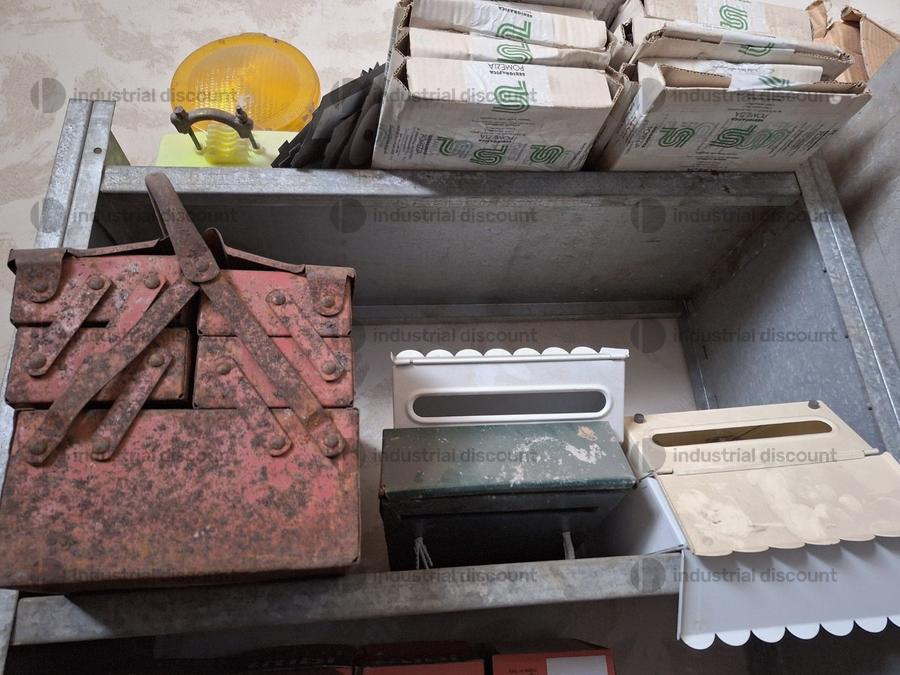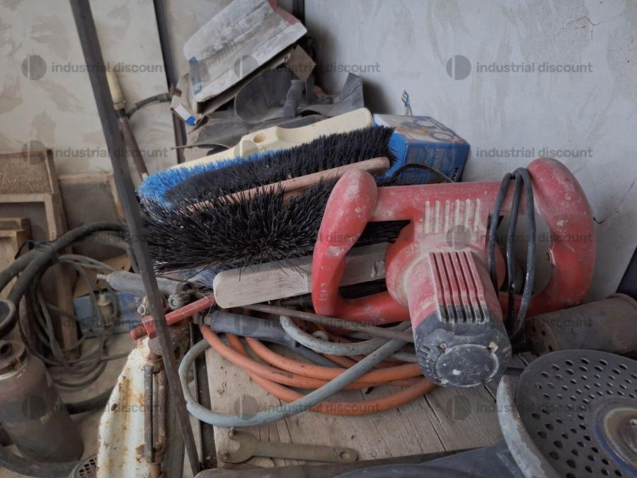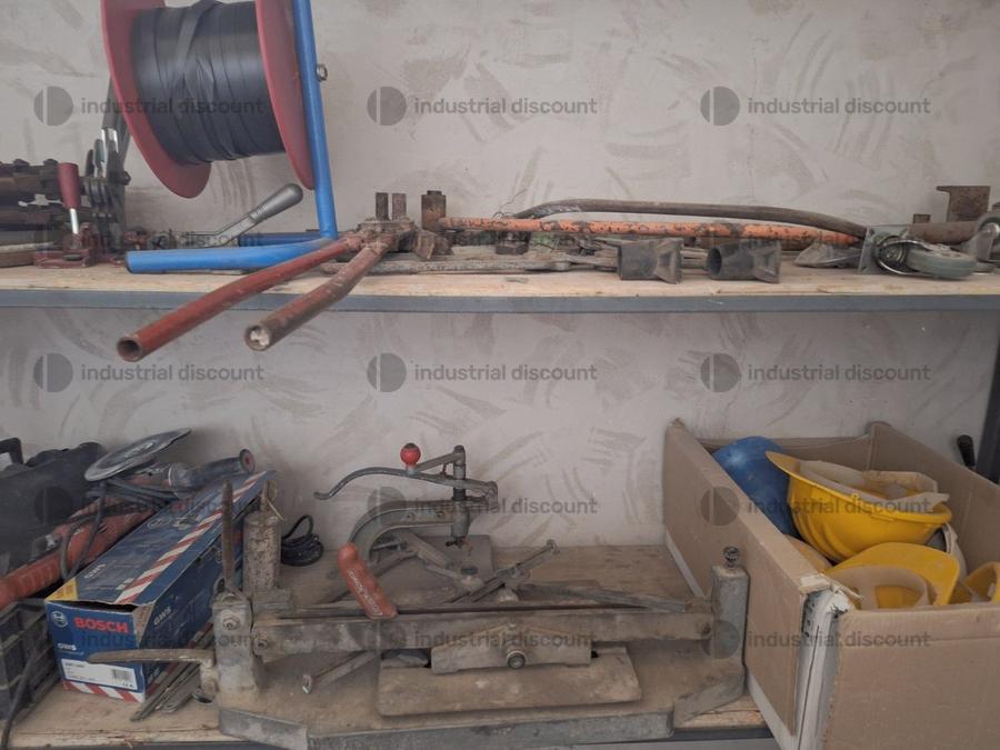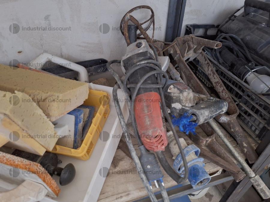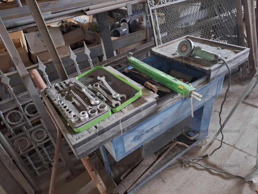 Macchinari attrezzature banchi di lavoro arredi di officina e giacenze di materiali edili idraulici ed elettrici.