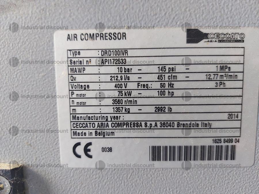 N.1 Comressore a vite insonorizzato marca Ceccato, mod.DRD 100 IVR, sn AP172533, anno 2014;